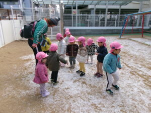 昨日は尼崎にも雪がたくさん降って、ビックリしましたね!普段なら寒い〜と言ってる子ども達も「雪見に行きたい!」と朝から元気いっぱい😃