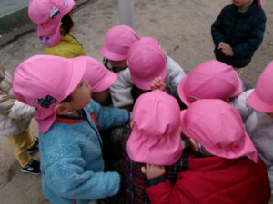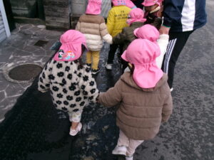 それなら見に行こう!と4人ほどのお友だちはお部屋で留守番(ワゴンに乗っている子ども)してもらい他のお友だちで散歩に行ってきました。