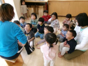 準備をしている間は待っててね。とお願いすると昨年から来ていたお友だちがリーダーとなり組み立てた所から登って行こうとするお友だちを優しく「まだだよ」「ここで待ってて」「危ないからね」と声をかけてくれていましたよ。