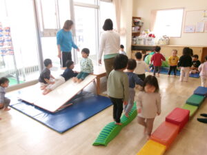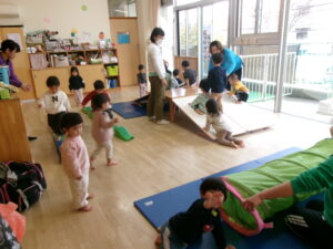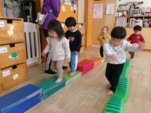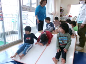 散歩の後はお部屋で身体を動かして遊びました。