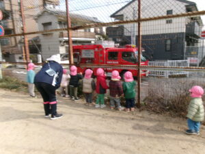 帰り際に消防車がやって来てみんなでゆっくり見ることが出来て大喜びでしたよ♪