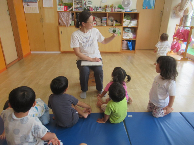 どんぐりの夏休みが終わり、今日から保育が始まりました。元気で、いいお顔で登園してくれたお友だちがたくさんいました。そして、お休み中の楽しかったことなどをたくさんお話してくれました。夏のしりとりうたをみんなで歌った後は「花火したよ。」、「海行った。」「ラムネ飲んだ!」楽しかった思い出があふれてくるようでした。また今日から朝ごはんをしっかり食べて、元気に遊べるようにご協力どうぞよろしくお願いします。