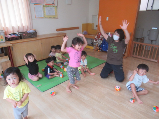 どんぐりでは季節の歌を歌っています。今は「どんぐりころころ」「まつぼっくり」「ポンポコたぬき」などです。知らない歌でも手を叩いてリズムに乗ったり、知っている歌は大きな声で歌っています!