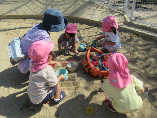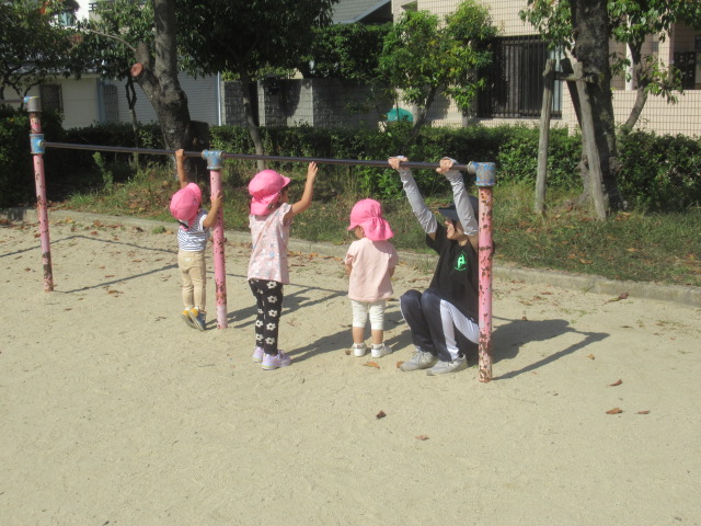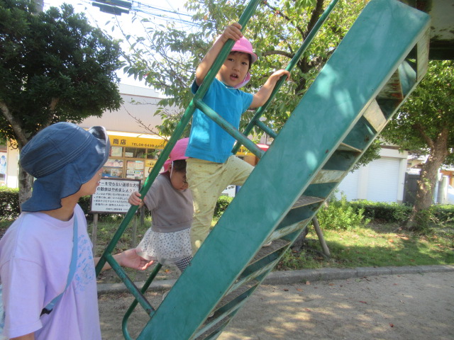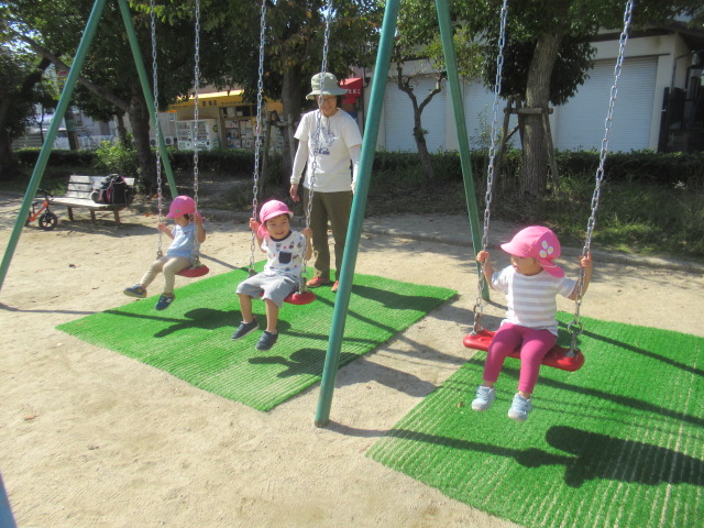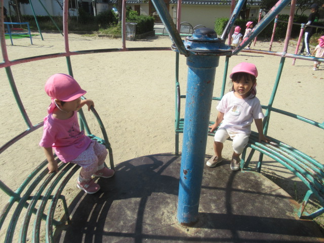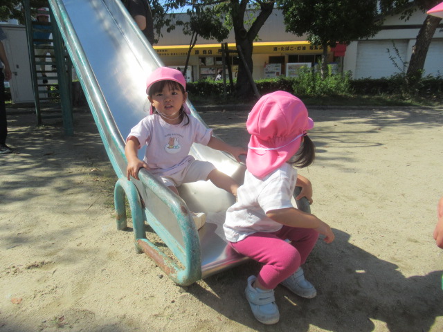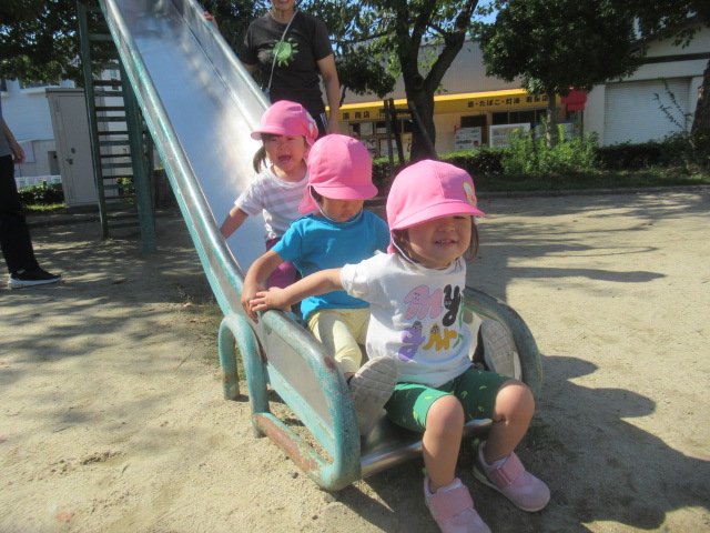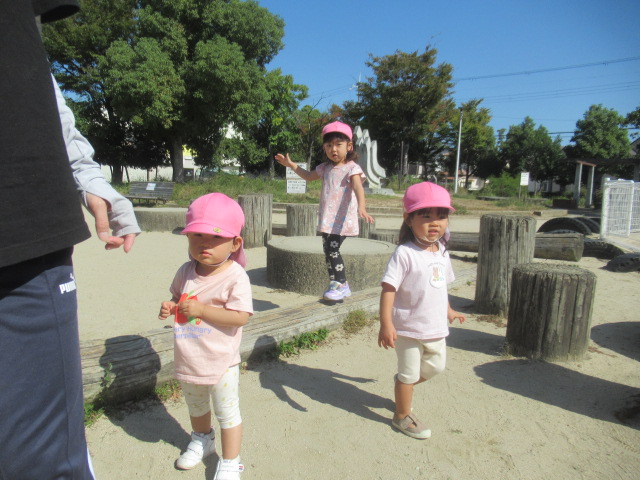 公園までワゴンと散歩のお友だちに分かれて向かいました。道中、いつもの「猫さんには会えるかなー?」「お花綺麗だねー」などなど会話が楽しく公園にも早くに着くことが出来ました!