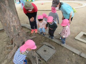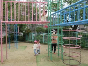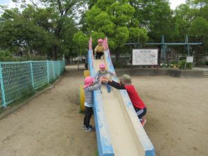 城の越公園へ、散歩に出かけました。公園では、ブランコ、すべり台、大型遊具など思い思いの場所で遊びました。鬼ごっこをしたり、ダンゴムシを探したりしてたっぷり遊びました!😊