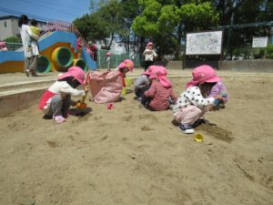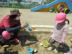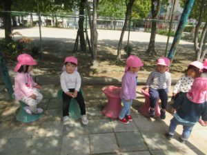 昨年度からきていたお友だちの姿にも少しずつ変化があります。大きかったお友だちが幼稚園や保育園へ行っていなくなった分、僕たち私たちが大きいんだもん!と、なんだか張り切ってるように感じます。小さいお友だちのお世話をしようとしたり、お集まりで名前を呼ぶとお返事「ハイ!」と元気よく返事をしたりほほえましい姿がみられましたよ。