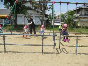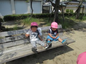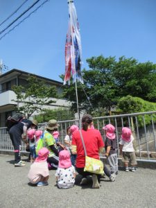 今日も寄り道をして公園に行きました。イチゴを見つけたり、鯉のぼり🎏を見に行ったり!覚えてるお友だちも増えて、角を曲がると「まだだね〜」とワクワクさせる気持ちを言葉にして伝えてくれました。見つけるとうわぁ〜!!と走り出して「おっき〜ねー!」「おとさん、おかあさんや!」などなど目をまん丸にして見ていましたよ^_^