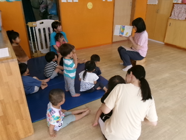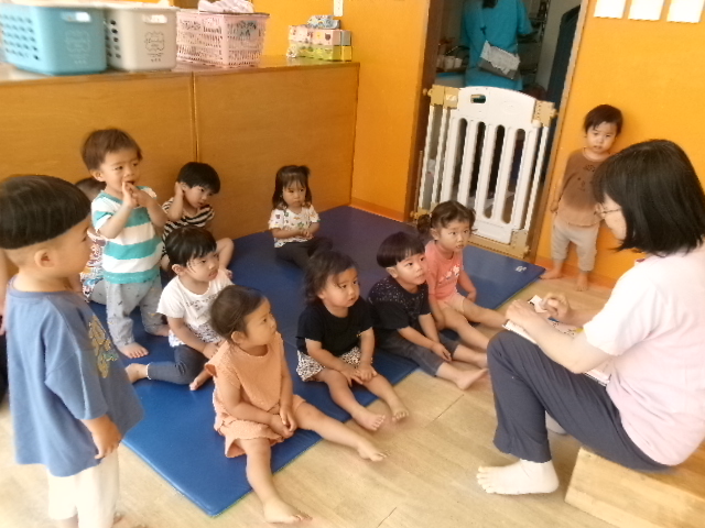 朝のお集まりで、○色の人呼びますねーというふうに、色や柄ごとに名前を呼びました。自分は何色の服かな、水色のお友だちはどこにいるかなと周りを見渡したりして興味を持って見ていた子がたくさんいて楽しめました。