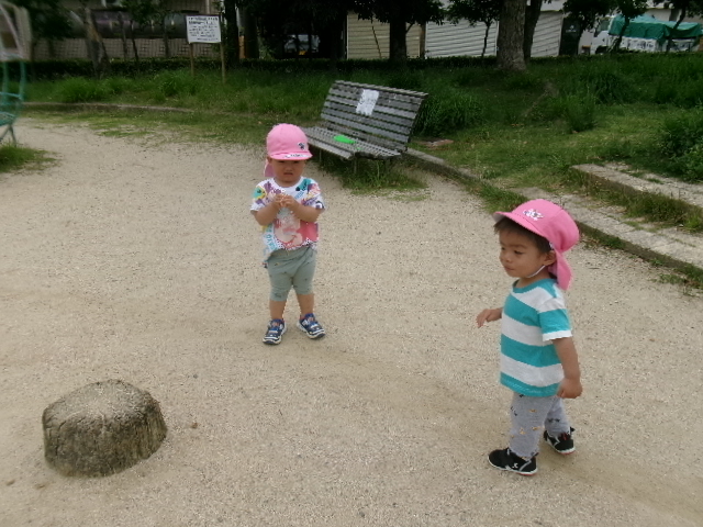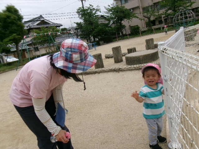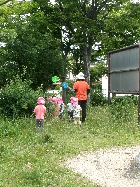 <公園へ>近くの公園へお散歩へ行きました。ちょうちょいるかな楽しみにしていたので虫取り網、そして涼しく遊べるかなと霧吹きをもって行きました。