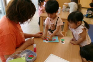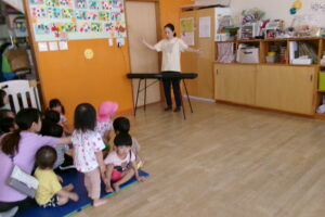 どんぐりころころやまつぼっくりなどいつも歌っている、知っている歌はピアノの音が聞こえてると自然とうたい始めます(^^)みんな歌が大好きです(^^)次は何うたう?と子どもと決めながらたくさんうたいました♪