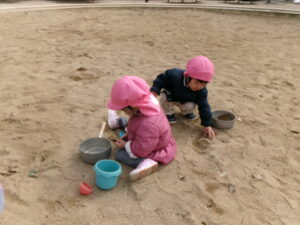 そんな中で、砂場でだんごつくったよー!コーヒーつくったよーと休憩所のようにみんなに声をかけてくれるお友だちもたくさんいてましたよー。