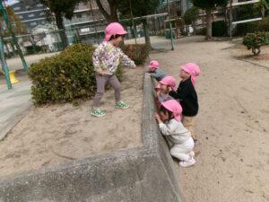 その後はかくれんぼしたい!と2人で始まったかくれんぼが自然とあちらこちらで隠れている子どもたち(笑)