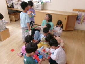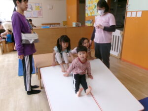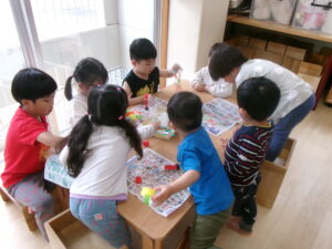 滑り台コーナーとおもちゃコーナーに分かれて遊びました。今日もどんぐりは賑やかで楽しい声が響いていましたよ(^^)