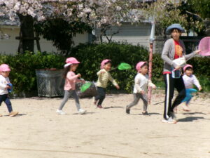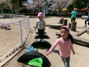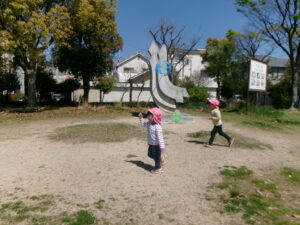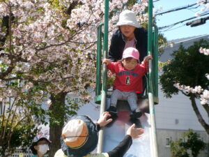 それから公園に行きました。遊具や砂あそびはもちろん、鬼ごっこをしたり、アミを持ってチョウチョを追いかけたり、子どもたち同士で、かくれんぼが始まって、「もういいかーい?」「もういいよー」「見ーつけた!!」と言う声が聞こえてきて、とってもほっこりでした。