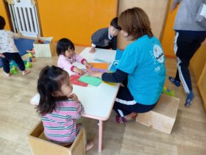 季節の歌でどんぐりでも♪こいのぼり♪🎏の歌をお集まりで歌っているので、少しずつこいのぼり制作をしています。