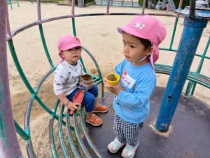 他はダンゴムシや砂場でケーキ作りや、砂場の周りを走ったり、たくさん遊んで帰ってきました^_^