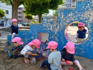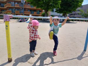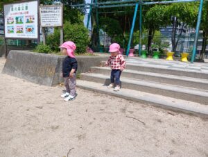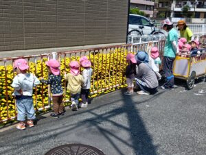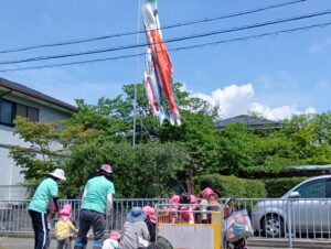 お散歩しながらいい物探しに出かけて歩いていると…大きな大きな鯉のぼり🎏を見つけて大喜びの子どもたち。