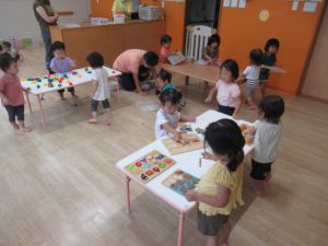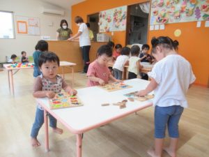たくさん遊んで汗もかいたので温かいシャワーを浴びてスッキリしました。シャワーの後は、コーナー遊びを楽しみました。