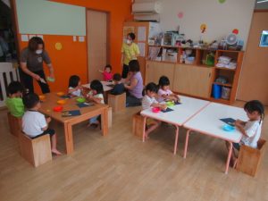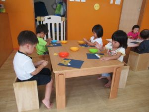 昨日より9月の製作をしています。いろんなお月見だんごが並んで、見ていると思わず微笑んでしまいます。お部屋に順次飾っていきますのでお楽しみに!