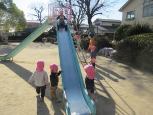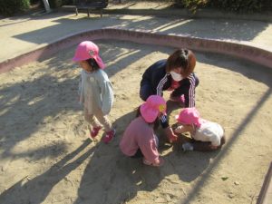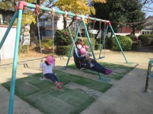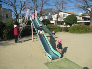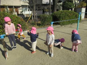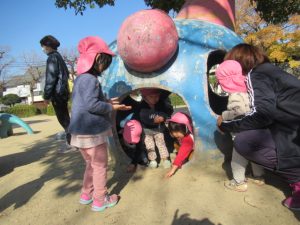 今日はいつもに比べると暖かな日差しだったので、お外でたっぷり遊ぼう! と公園へ向かいました。実がたくさんできている木を見つけたり、遊具で遊んだり、秋にどんぐりを拾ったのを思い出して同じように探してみたり。いっぱい遊んで帰ってきました。