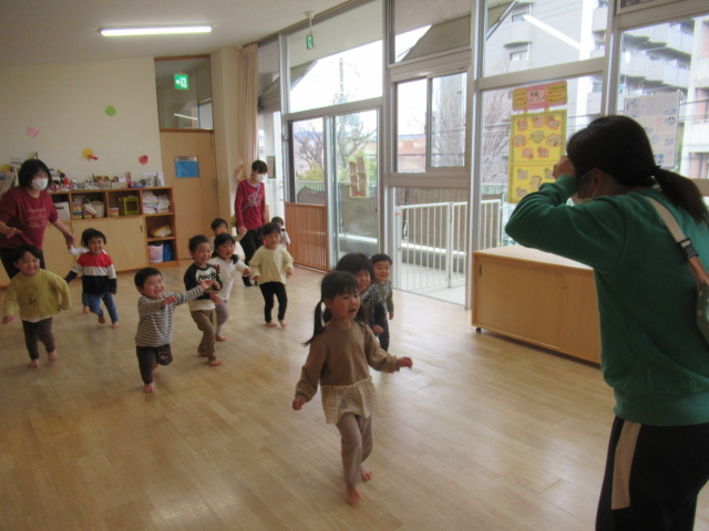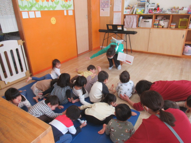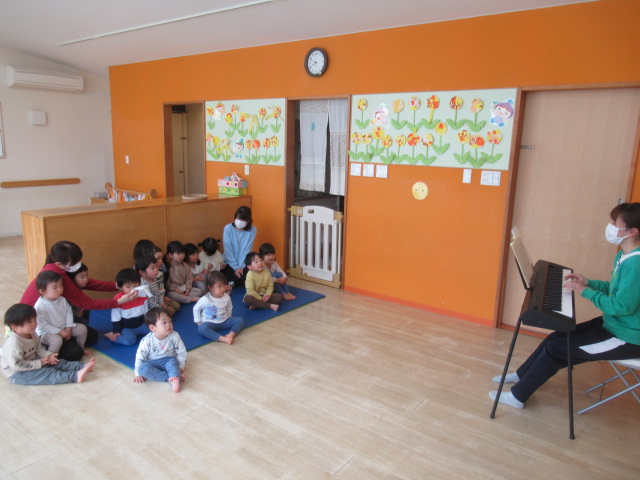 暖かな1日でした。もう春が来た〜ということで春のうたを歌いました。“ちょうちょ”“チューリップ”など、みんなよく知っていて身体を揺らして歌っていましたよ😊