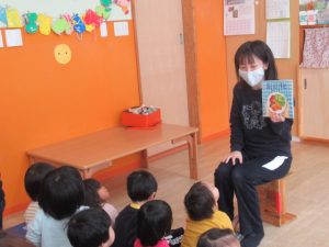今日は「おいしいおと」という絵本を見ました。キャベツはシャキシャキッ りんごはシャクシャクッと、食べたらおいしい音が聞こえてくる絵本です。おいしい味を味わって、おいしい音を耳で聞いて。食事ってとっても楽しいですね♪今日のごはんはどんな音がするかな?😊
