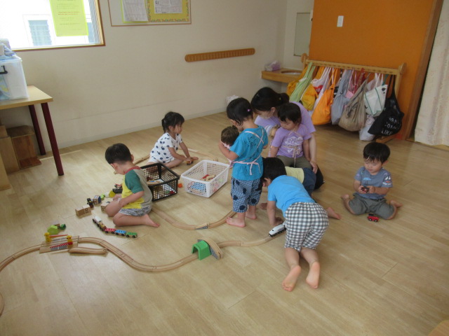 電車のコーナー、手指の遊びコーナーを用意してゆったり遊びました。