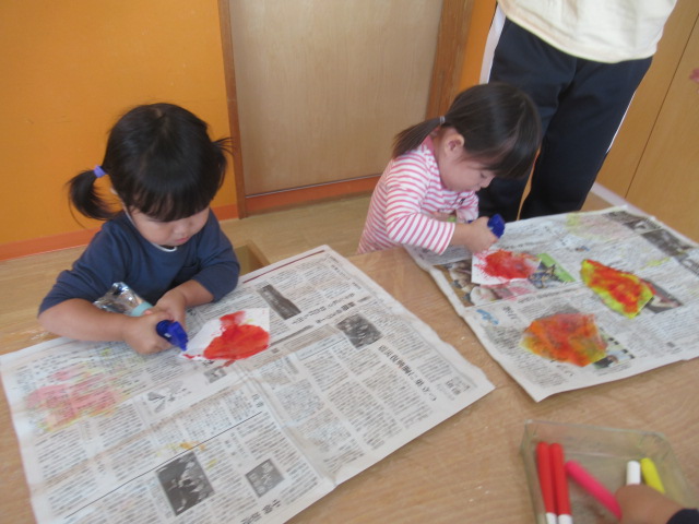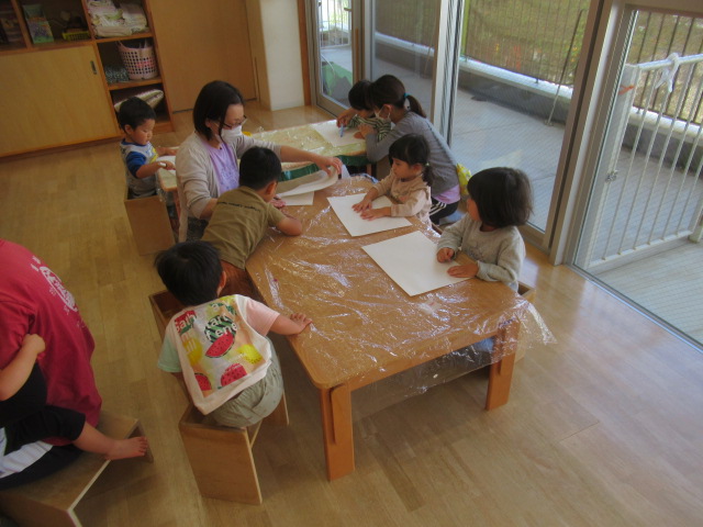 先週に引き続きトンボの制作をしました。既に先週制作済のお友だちはペンでお絵描きをしました。