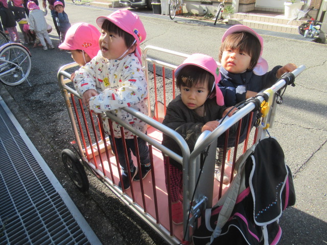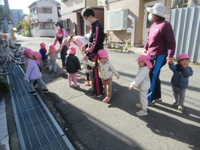 お散歩では、近くのおうちに飾ってあるクリスマスのリースや飾りを探しに行きました。今日は3つ見つけました。これから少しずつ増えてくるかな、しばらくはお散歩の楽しみの一つになりそうです。