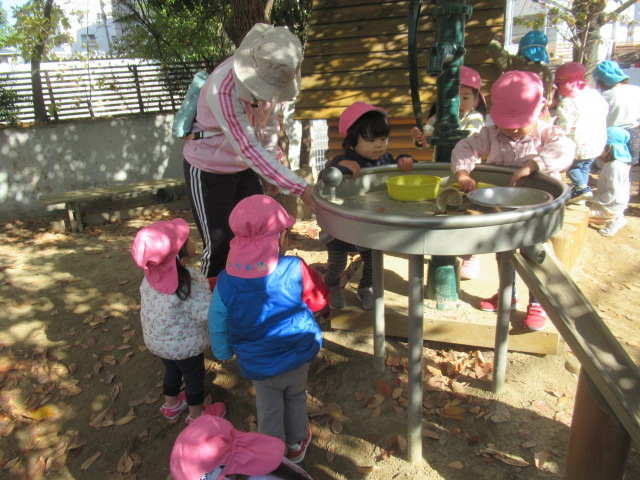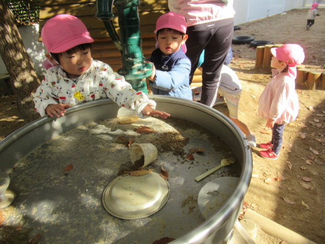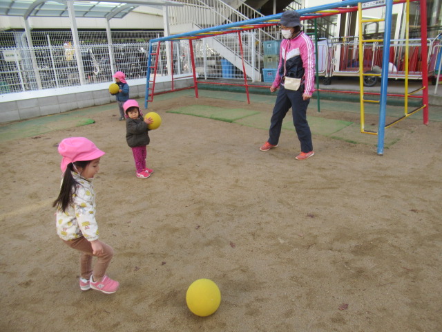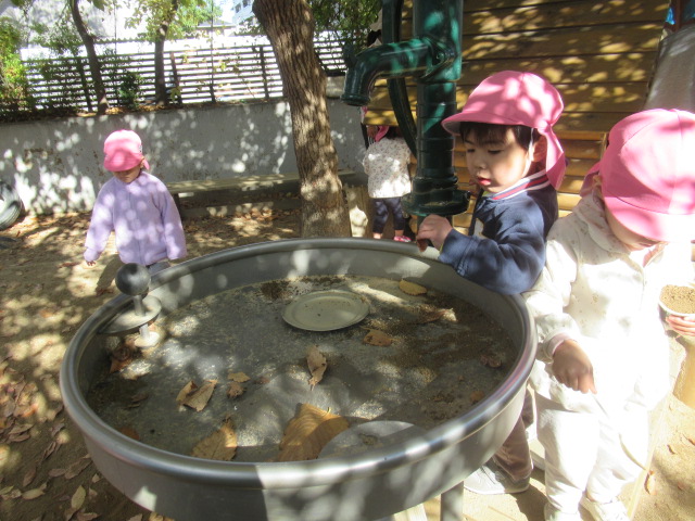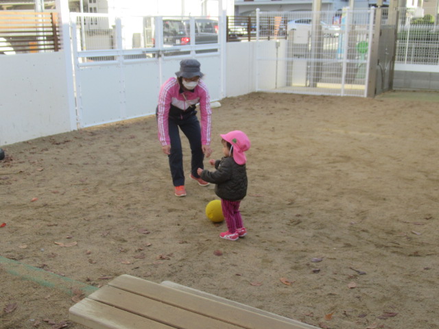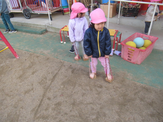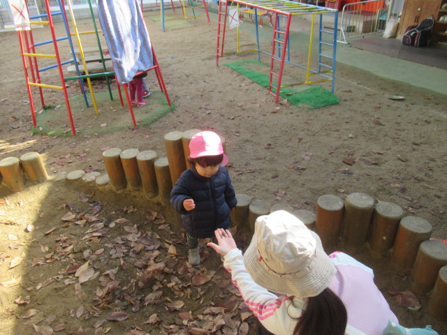 ます下駄に挑戦したり、八角ジムの中でかくれんぼをしたり、ボールで遊んだり好きな遊びを楽しみました。お砂場で遊んでいると、保育園の年長さんが声をかけてくれて一緒に遊ぶ姿もも見られました。