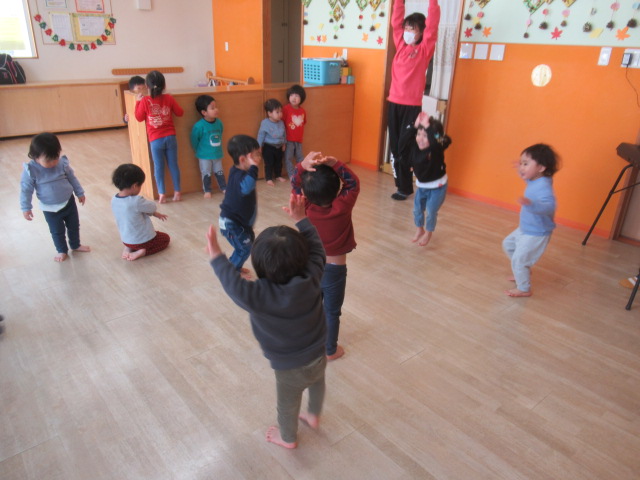 リズムに合わせて動いたり止まったり!止まるとなぜかクスクス笑う子どもたち^_^ かわいかったです♪