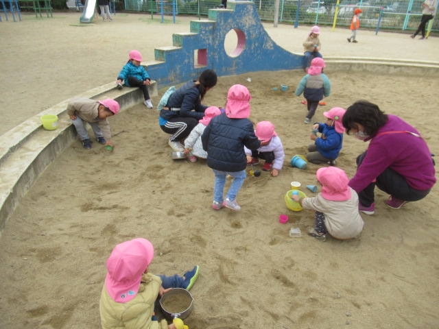 公園で、高い遊具に挑戦したりブランコ、砂場などなどたくさん遊んで帰ってきました^_^