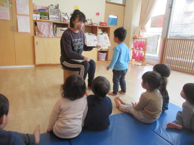 今日から2月。あと2回寝たら節分です。鬼は怖いけど、鬼の苦手な物はなんだったか、しっかり覚えているお友だちも増えてきましたよ!お豆、柊の葉、イワシのにおい。みんな朝からご飯いっぱい食べて力付けて来てね!みんなも先生たちもいるから力合わせて頑張ろうね!と話をしました。