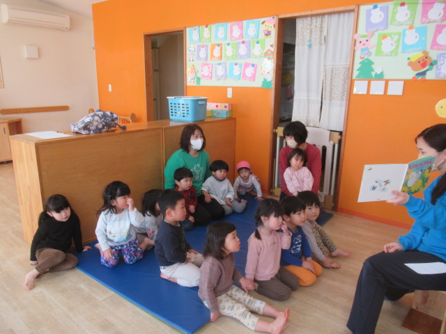 お集まりで「チョウチョのしろちゃん」という絵本を見ました。チョウチョの他にもミツバチやてんとう虫が登場します。春にはきれいな花がたくさん咲いて、そこに色々な虫が集まってくるお話です。絵本を通して四季を感じられるようにたくさん絵本を読んでいきたいと思います😊