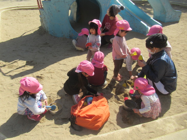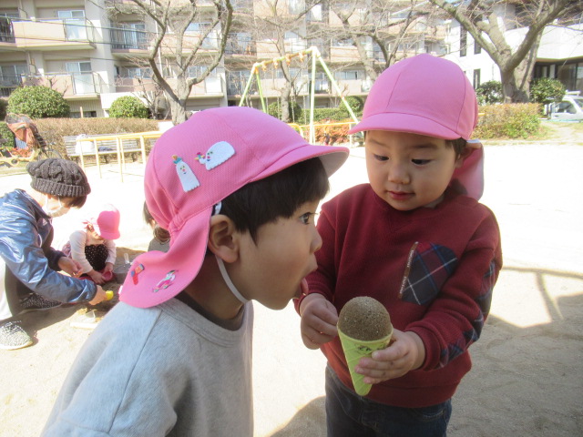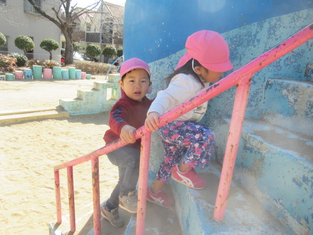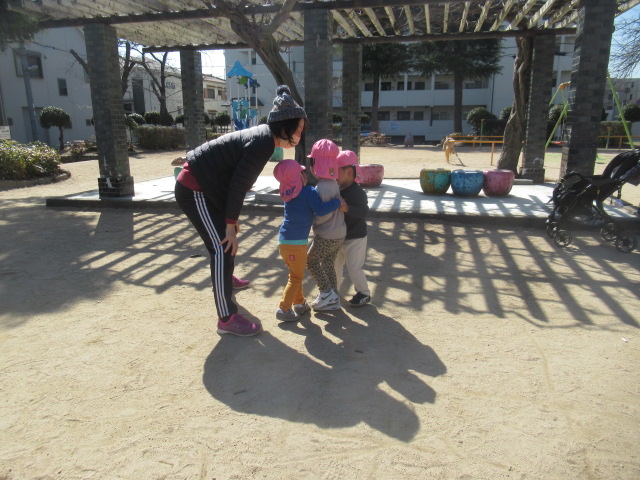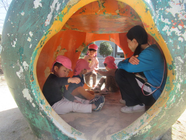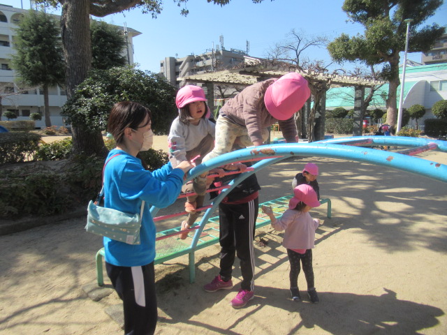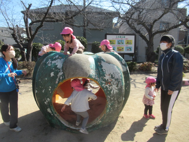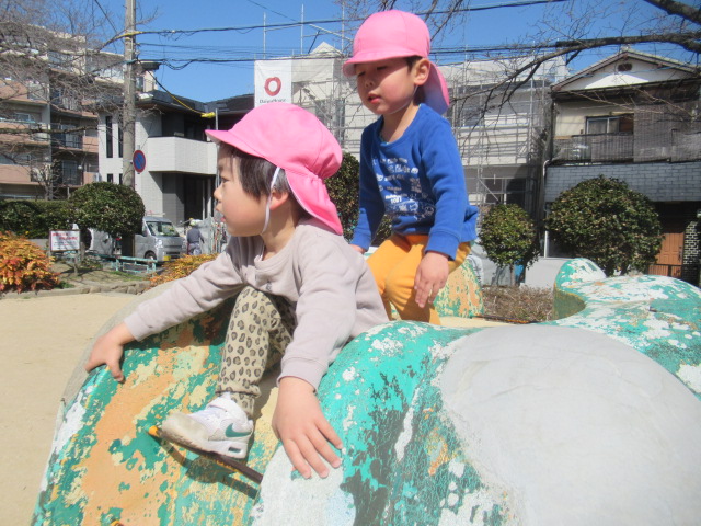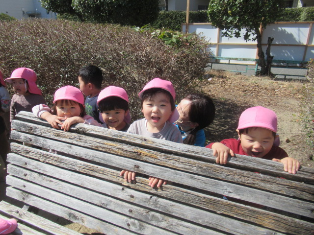 絵本に出てきた花や虫を探しに行こう!と公園へ散歩に行きました。とても暖かくポカポカ春の陽気でした。今日も元気いっぱいなお友達は、追いかけっこを楽しんでいました。散策をしていると、小さい花や花の密を探しているミツバチを見つけて、春を感じることができました😊公園でたくさん遊んでお腹ペコペコの子ども達は給食もモリモリたくさん食べました😁