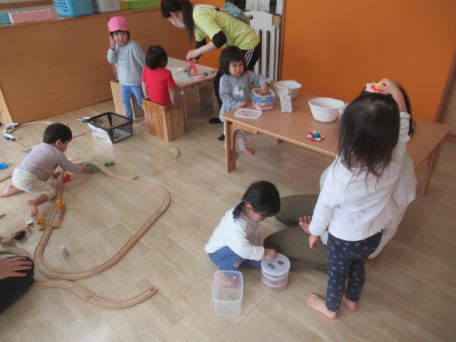 今日から登園のお友だちやまだ数回目のお友だちが朝は涙のお別れですが、昨年からいるお母さんやお友だちも経験してきたので、「大丈夫よー」「懐かしい!いつ泣き止むのかと心配した頃を思い出します!」と優しく声をかけてくれています。その度にキョトンと顔を見て泣き止めたり、、、。様々ですが、みんなに声を掛けてもらい嬉しいですね。