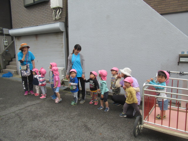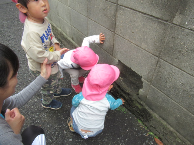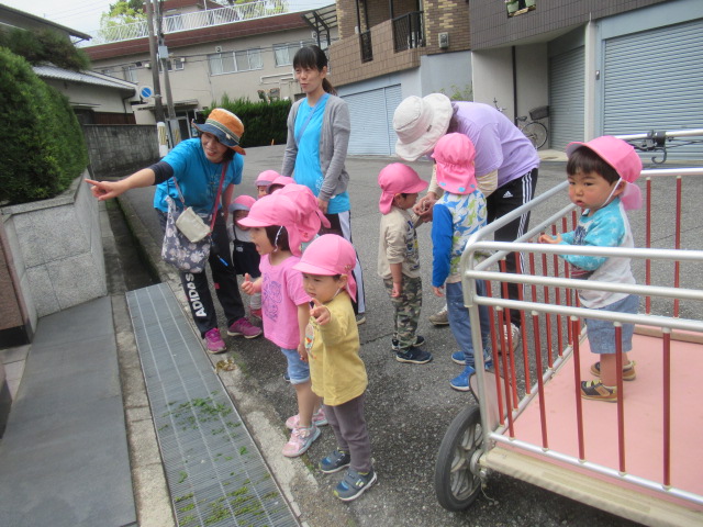 雨が止んだのでその間に!!と散歩に出掛けてきました!道中きれいな色の花がたくさん!何色が好き?「あかいろ!」「むらさき!」と寄り道しながらみんなの大好きな「覗き穴」に行ってきました。ゆっくりみて、給食時間に間に合うように帰ってきました^_^