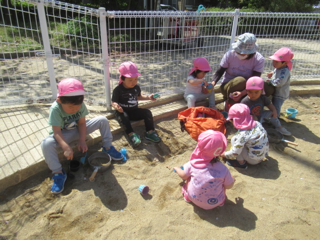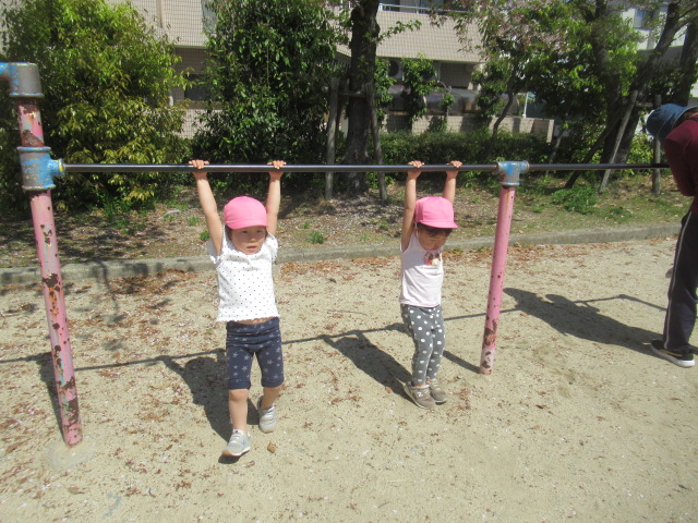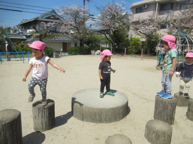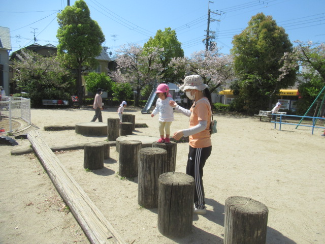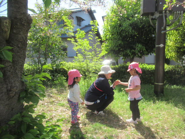 みんなもぽかぽかお日様にあたって元気に遊びに行こう!と公園へお散歩に行きました。クローバーやタンポポのお花を見たり、ダンゴムシを探したりと春を感じながらそれぞれが思い思いの場所でたっぷり遊んで来ました♪