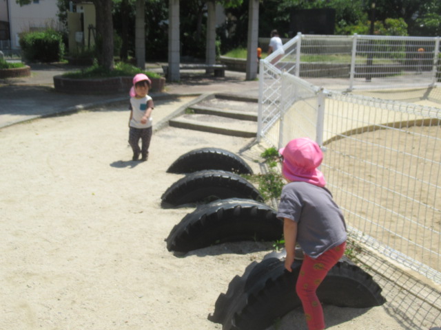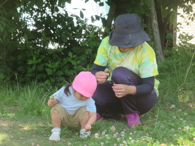 公園では滑り台🛝や砂場、お花摘み遊びを楽しむ子どもたち。摘んだお花を「見て見てー!!」とあちらこちらにいる保育士に声をかけに行くほど喜んでいたり、滑り台では登ってはみたもののやっぱり怖いなと降りたり登ったりと階段を楽しむ子どもも多かったです。チャレンジする姿は素敵ですね。探索遊びも楽しくて、あちらこちら歩いては「ここにいるよー!」と「おーいおーい!」と声を掛けたりしてそれぞれ楽しく過ごして帰ってきました^_^