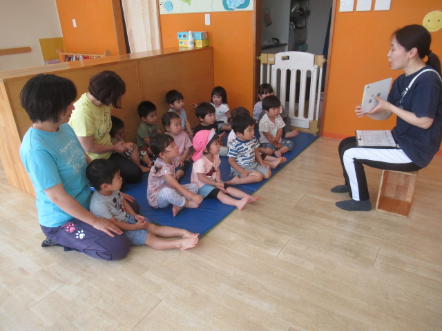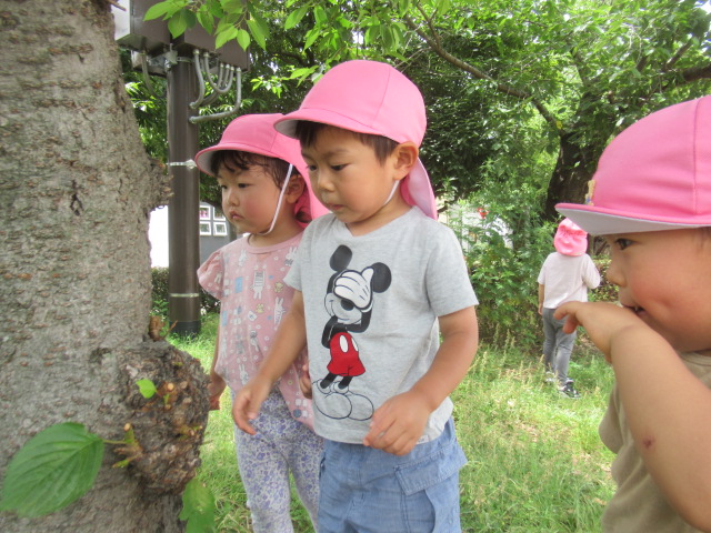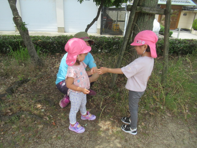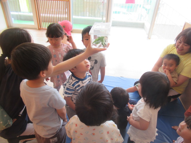 「ちょうちょのしろちゃん」の絵本を見ました。ちょうちょがサナギから出てくる場面があり、絵本を見た後に「どんぐりにいる青虫もサナギになったので、これからちょうちょになる準備をしているから静かに見てね。」と話をすると、じーっと静かに見てくれていました。何色のちょうちょが出てくるかな?と今から楽しみなどんぐりさんです😊