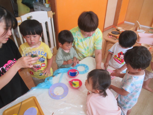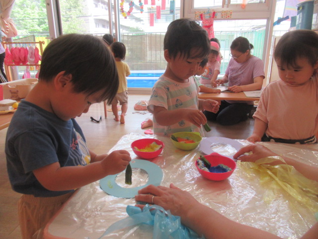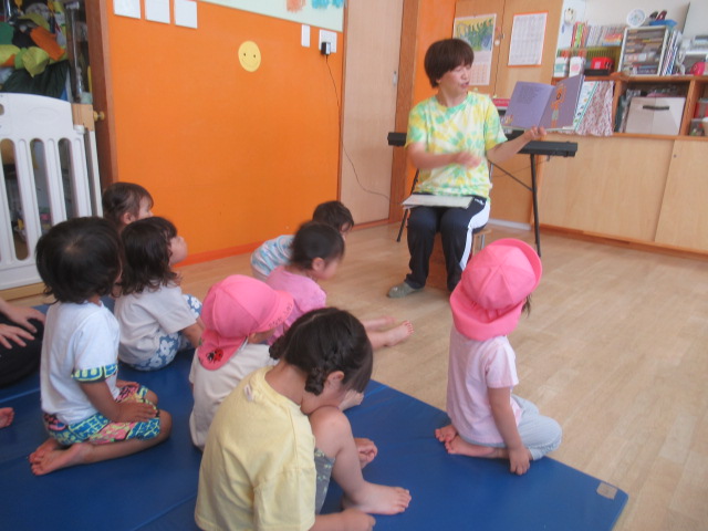 今日は七夕まつりの絵本を読んで、みんなから届いた短冊も紹介して願いが届きます様にとお願いしました。年に一度の七夕行事です。今日はどんぐりにも笹が届くので、飾っておきますね。