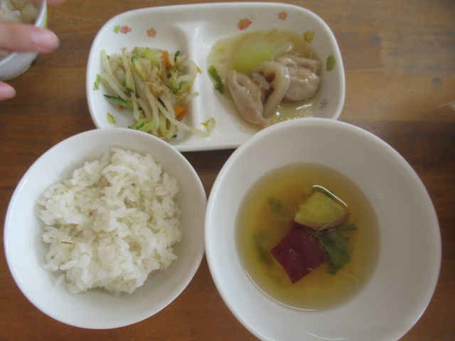 紙芝居『ぷかぷかじまのおしゃれなとこやさん』を読みました。おしゃれなオウムの床屋さんは、チョキチョキお客さんのお気に入りの髪型にしてくれます。そこへ王様のライオンがやって来て…アフロヘヤーや可愛いウサギの髪型に大変身!ページをめくるたびに子どもたちは大笑いで「それ、似合う〜」や「かわいい〜」とどの髪型が似合うか選んでくれました。保育士に似合う髪型は?と聞くと「ぶどうを乗せたらどうかな?」と子どもたちが好きな果物を乗せるアイデアを出してくれましたよ♪「こんな髪型にしました〜」と青色のカツラを被って見せると「え〜!似合う」と意外と高評価♪優しい子どもたちでした♪