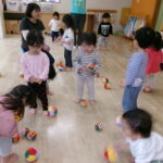 〈うたおう♪〉 マラカスを持って、春のうた、みんなが大好きな歌をたくさんうたいました♪リズムに合わせてマラカスを振ったり、口ずさんだり、可愛らしい声がたくさん聞こえてきました(^^) 〈チョウチョいる…