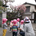 〈花まつりに行ってきました!〉 おあつまりで、「だるまさんが」のペープサートをしたあと、お名前を呼んで、「さんぽっぽ」の絵本を読みました。 そのあと、「公園に行こう!」と出発したら、守部神社で、『花ま…