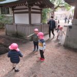 <さんぽにいこう♪> 朝のお集まりの後にさんぼにいこう♪という曲に合わせて、みんなで遊びました。くすぐりあったり、タッチしあったり、ジャンプしたり掛け声も繰り返している内にみんなの声が揃って楽しかった…
