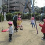 <はらぺこあおむし> 少しずつ暖かくなってきて、虫たちが顔を出し始める季節になったので、「はらぺこあおむし」の絵本を見ました。それから公園にも虫さんがいるかな?と散歩に行きました。 <城ノ越公園へ> …