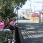 <電車の話> 『ないしょでんしゃ』の絵本を読みました。次のお話が見開きになっていたり、トンネルの穴があいています。子どもたちは、次はどうなるのかなとワクワクしながら「開けてみて~」とページが変わるのを…