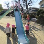 <今日もポカポカ> 今日はクリスマス🎄の絵本を読んで園庭でたっぷり遊びました!今日は砂場のところにみんなが集まり、ごっこ遊びが盛んでしたよ。「お団子作ろー!」「ケーキ届けに来ましたよー」とあちらこちら…