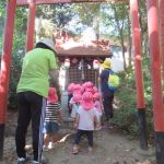 <めっきらもっきらドーンドン> 朝のお集まりで「めっきらもっきらどーんどん」のお話を読みました。カンタくんが神社で大きな穴を見つけてその中を覗きながら、おまじないのような唄を歌うと愉快な妖怪たちが出て…