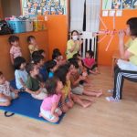 <朝のお集まり> どんぐりルームではマットの上に集まり、みんなの名前を呼んでいます。今日は歌に合わせて名前を呼びました。呼ばれたお友達は手をキラキラして、♪ここです ここです ここにいます〜♪と歌でお…